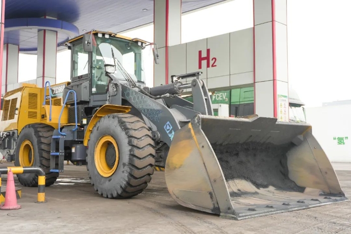 徐工氫能電動裝載機,以氫氣作為動力能源,在燃料電池系統與氧氣發生化學反應產生電流,產物僅有電、熱量與水,有效減少燃油造成的空氣污染等問題,實現零碳排放。