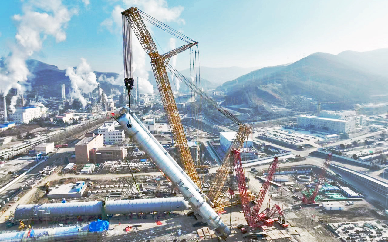 近日,徐工4000噸級履帶起重機XGC88000攜手1250噸級履帶起重機XGC17000現身吉林某大型石化項目現場,聯袂吊裝首臺大型塔器。