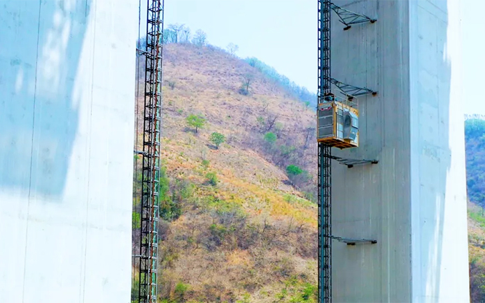 大橋建設還投入使用了9臺SC200/200FS1施工升降機,應用新型高可靠傳動機構及高能效齒輪減速電機,運行平穩、安全可靠,協同徐工群塔保障大橋施工有序開展。