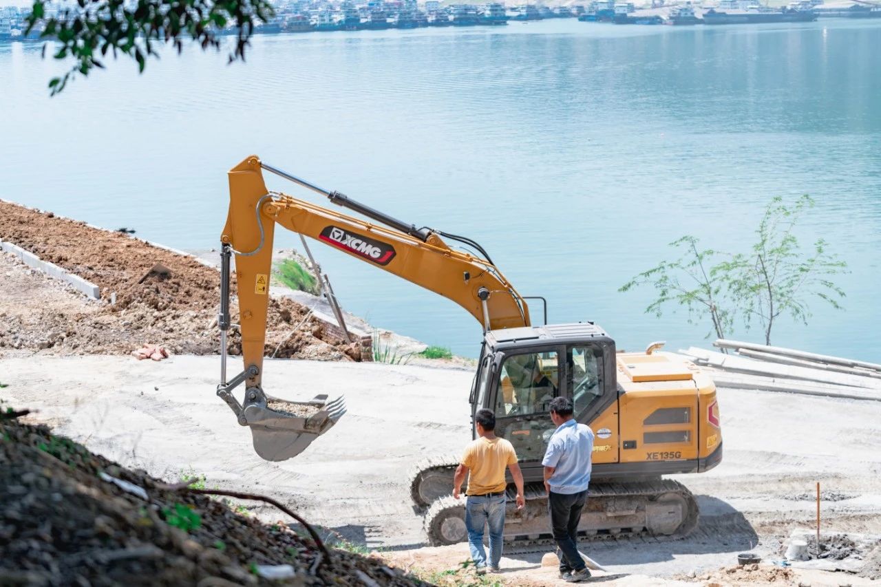 XE135G正在進行夔門旅游碼頭建設,進行砂石挖裝、路基填筑、水泥轉運等作業,性能穩定,可謂是工地上的“多面手”。 夔門旅游碼頭建設項目工期緊張,截止到拍攝,XE135G已在項目工作6天,工作時長超過77個小時。田總講述,“這臺新機(XE135G)昨天晚上做了通宵,從昨天早上到現在,挖掘機一直沒有停,連續工作了30多個小時。”