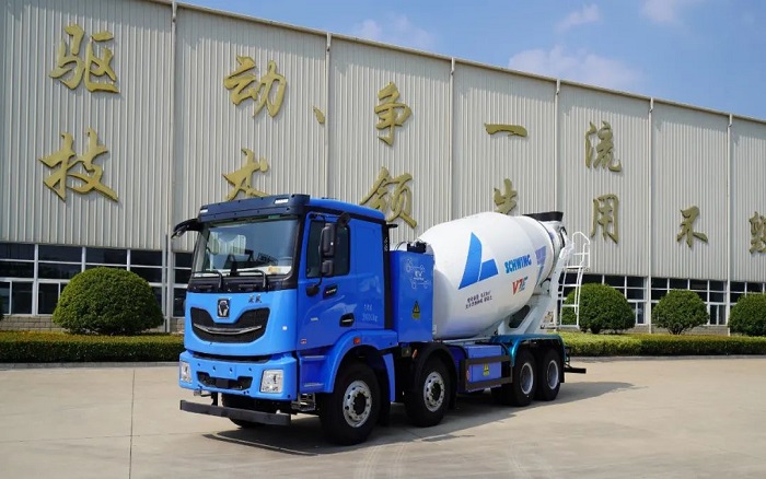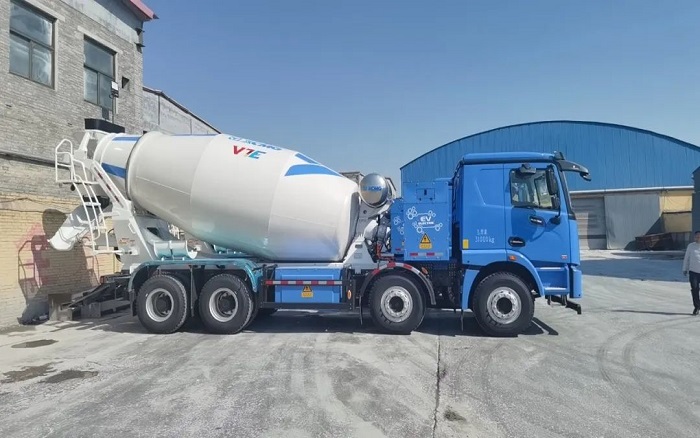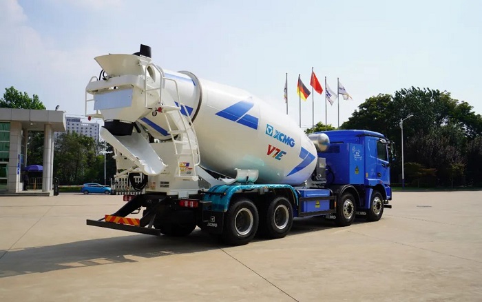 徐工純電動攪拌車擁有超大扭矩電機,峰值功率可達405kW,可輕松應對崎嶇道路和山區工況;采用后錐大折彎角弧形葉片+前錐大升角葉片技術,使進料速度提升5%,進料快,不離析,混凝土運輸效率進一步提升。