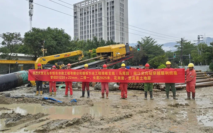 本次工程需穿越閩江,穿越距離長(zhǎng),地層條件復(fù)雜,淤泥與花崗巖交錯(cuò),施工難度系數(shù)大,此前,該項(xiàng)穿越工程因設(shè)備能力等原因停滯長(zhǎng)達(dá)4年之久。施工過(guò)程中,徐工XZE8200起步回拖最大推拉力達(dá)到370t,最大扭矩90kN·m,全程高效施工,順利完成回拖,贏得了客戶和工程項(xiàng)目部的高度認(rèn)可。