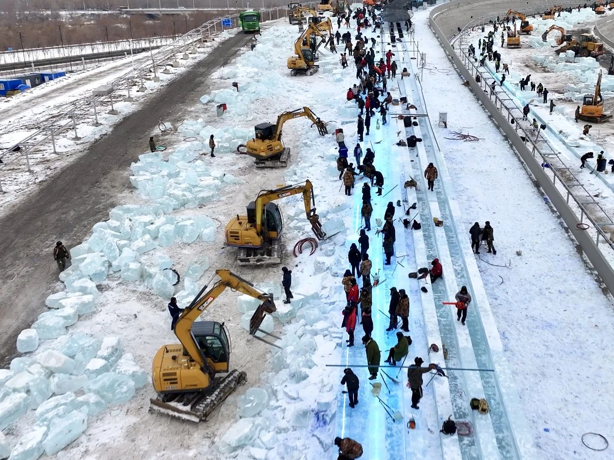 全長500米的“冰雪大滑梯”無疑是園區(qū)內(nèi)的“人氣王”,今年迎來了重磅升級,滑梯滑道增加至24條,徐工挖掘機在滑梯建設中起到了關鍵作用。