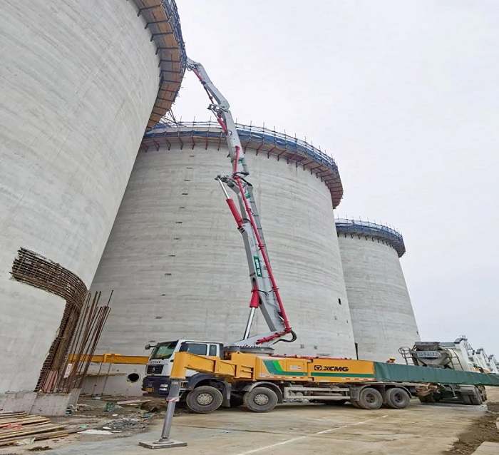 六座巨型糧倉(cāng)拔地而起,徐工HB62V泵車化身 “基建尖兵”,精準(zhǔn)擊破施工精度高、工期緊的雙重挑戰(zhàn)。