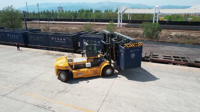 該設備搭載可旋轉式集裝箱專用吊具,操作安全性高,能夠實現迅速移位、精準裝卸,覆蓋鐵路20英尺干散貨箱、敞頂箱等各種箱型。既能完美避開接觸網安全距離,又能解決多層集裝箱存取難題,真正實現“一機多用”。