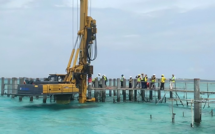 本次施工項目地質(zhì)條件復雜,表層為松散砂質(zhì)土,下層為密實珊瑚巖層,對樁基施工的精度與設備性能提出了嚴峻挑戰(zhàn)。