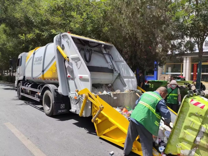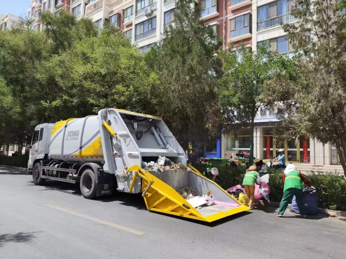 瓜州縣城區日均產生生活垃圾超120噸,其中60%集中于老舊小區與商業街區。徐工壓縮車采用雙向壓縮技術,通過“刮板-滑板”聯動系統實現垃圾的破碎、壓縮與填裝一體化作業。在淵泉鎮郵電巷社區,設備單次裝載僅需14秒,同等車廂容積下垃圾裝載量提升20%,輕松應對高峰時段的桶裝、袋裝垃圾集中收運需求。