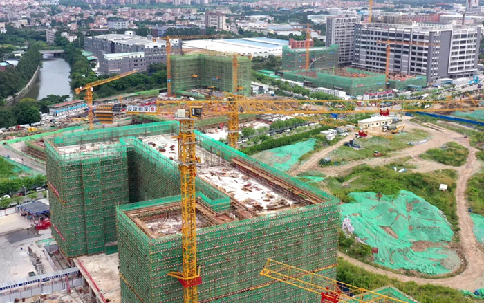 結合項目群塔施工方案,徐工XGT7026-12S1塔機承擔鋼筋等建筑材料的吊裝任務,助力產業園更好更快的建設。徐工S1系列產品采用模塊化安裝技術、精準化智能控制技術等先進技術,實現安裝速度快、吊裝效率高。