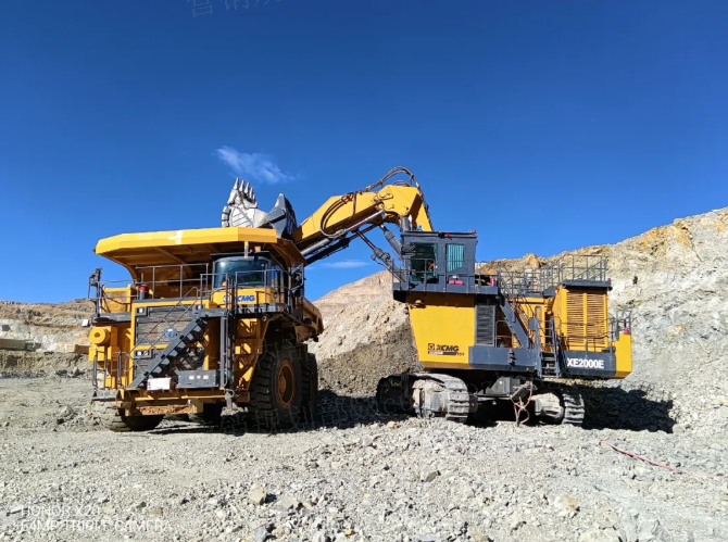在開采環節,徐工XE2000E電動液壓挖掘機憑借強悍性能擔當先鋒。該設備配備12m3標準斗容,通過優化液壓系統與專屬“礦山模式”,既提升作業效率又降低操作門檻。其礦山作業數據表現卓越:單臺月均運行超540小時,可動率穩定在92%-93%,更曾實現整月“零停機”紀錄。